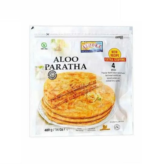 Serve a healthy and delicious meal for your family with the Ashoka Aloo Paratha. It is a well-known North Indian flatbread made of wheat and stuffed with spice potato filling. It is a good source of protein, sodium, calcium, iron, vitamin A, C, carbohydrates, and fats that contribute to a healthy diet. It is also free from added artificial preservatives for safe consumption. This halal Ashoka paratha is hand made, cooked on a tawa, and frozen to preserve its quality. You can heat and serve this paratha conveniently with some butter, pickle, or chutney for a complete tasty meal. This Ashoka paratha is a nutritious addition to a balanced vegetarian diet.
